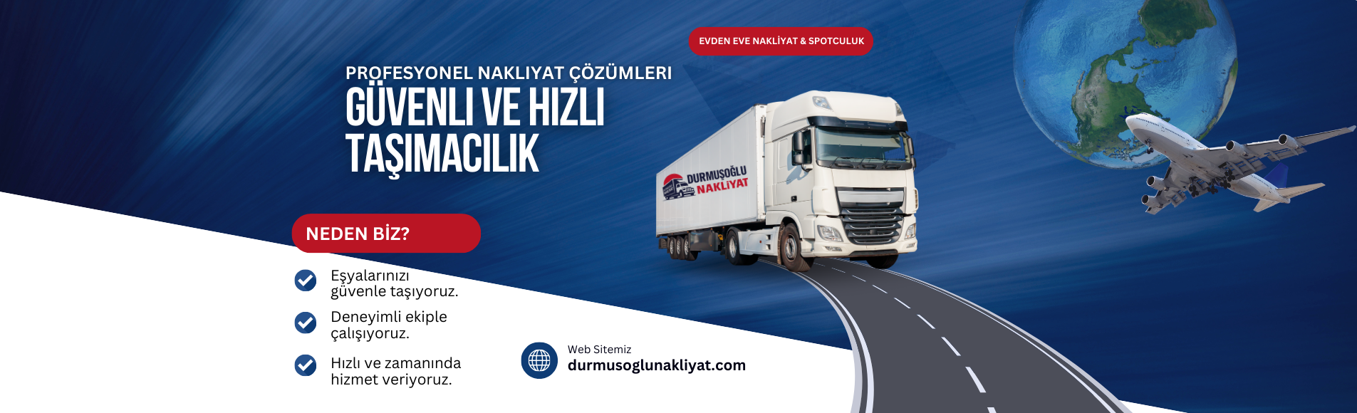 Durmuşoğlu Nakliyat olarak, taşımacılık sektöründe edindiğimiz yılların tecrübesi, geniş araç filomuz ve müşteri memnuniyeti odaklı hizmet anlayışımızla evden eve nakliyat sektörünün lider firmalarından biri olmanın gururunu yaşıyoruz. Kurulduğumuz günden bu yana, eşyalarınızı sadece A noktasından B noktasına taşımıyor; güven, titizlik ve profesyonelliği her aşamada sizlere sunarak "sorunsuz taşınma" deneyimi yaşatıyoruz. .. Devamı...